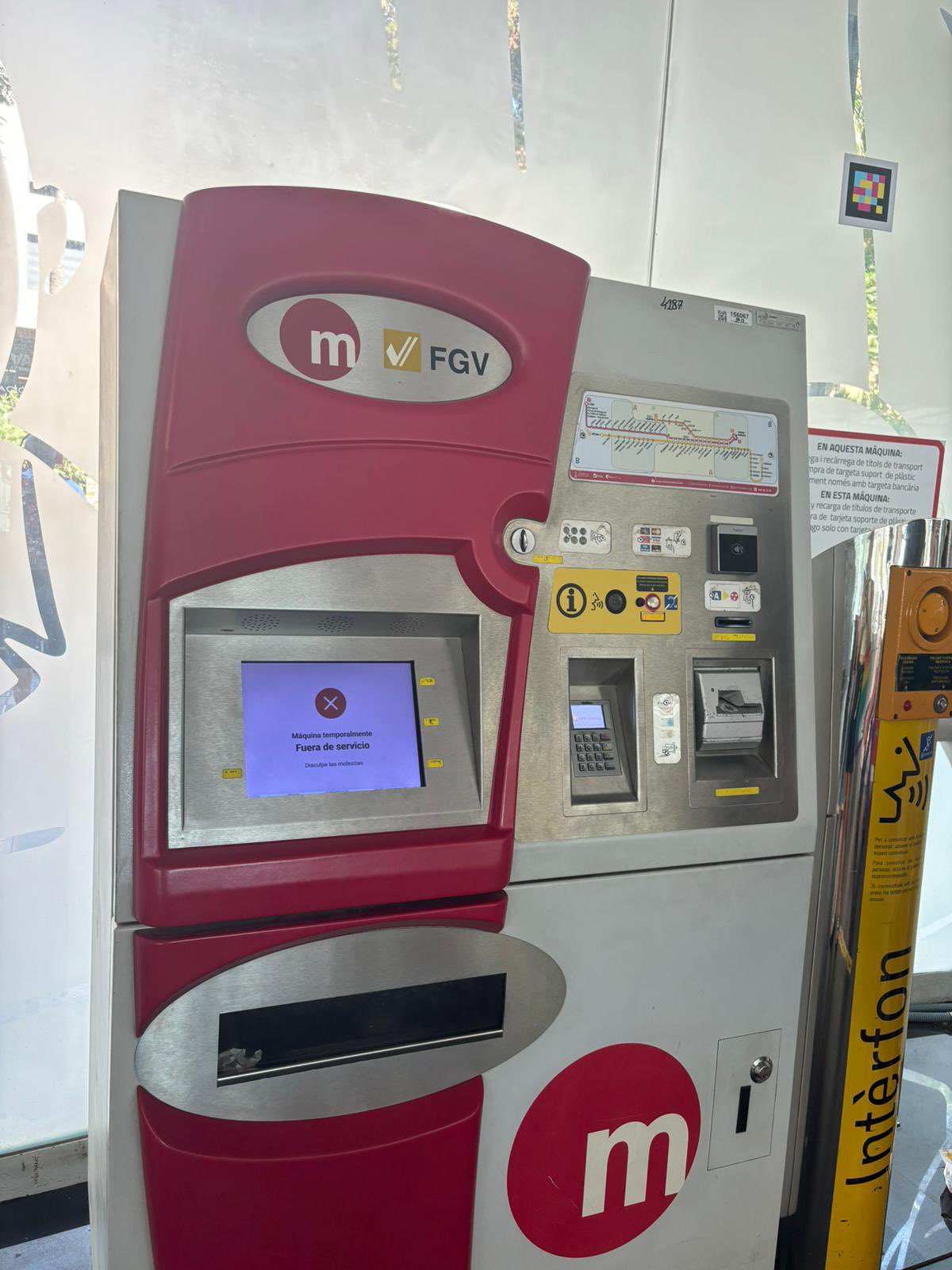 A los problemas generalizados de retrasos, falta de maquinistas y averías continúas se suma que la juventud de Torrent, que quiere recargar la tarjeta Móbilis 30 en la parada de Torrent Avenida no puede hacerlo porque las máquinas no permiten la recarga.